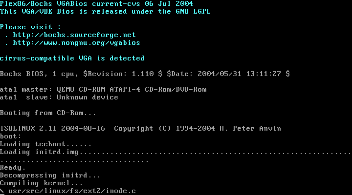Create a CD from it and boot it to see TCCBOOT in action (PC with at least 64 MB of RAM required). You can also try it with the QEMU PC emulator.